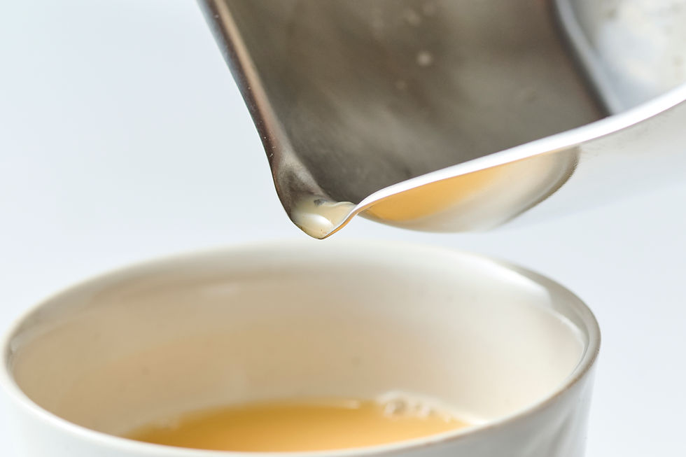 ムテキボウルの最大の特長は、液だれ知らずの特殊な「2段折形状」。一般的なボウルの注ぎ口と違い、ムテキボウルは2段に折られた注ぎ口が注ぎ終わった際の液体を切るように内側にもどすので、イライラする液だれを起こしません。